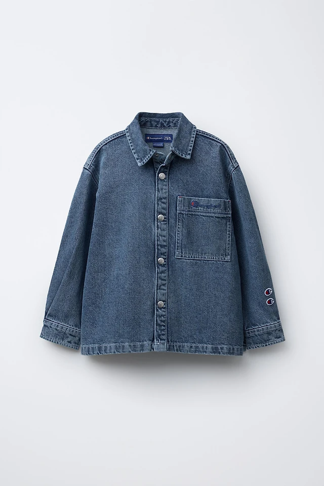 CHAMPION ® X ZARA EMBROIDERED TEXT DENIM OVERSHIRT