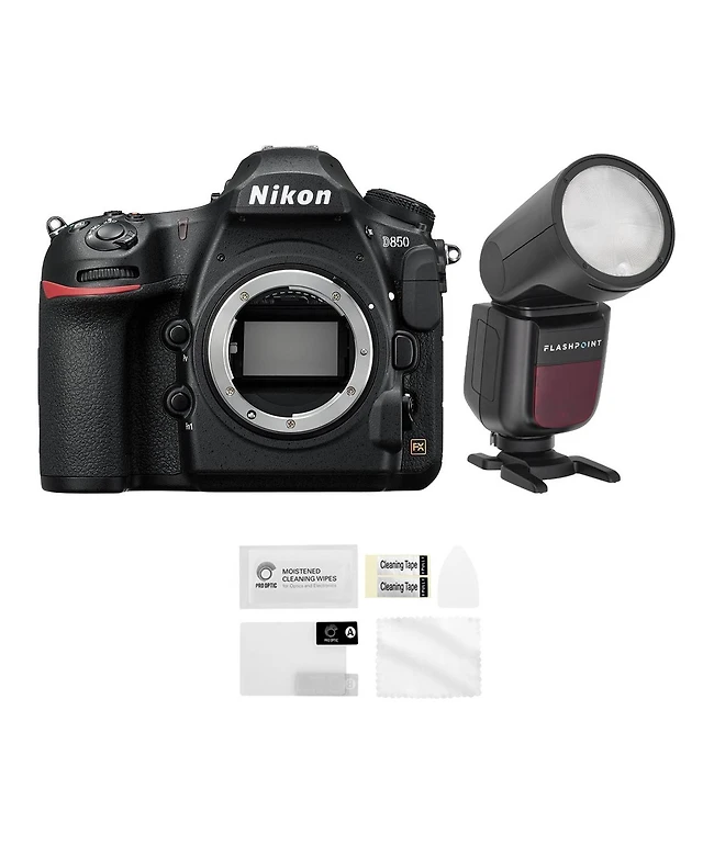 Nikon D850 Dslr Camera - With Flashpoint Zoom Li-on X R2 Ttl On-Camera Round Flash Speedlight For Nikon , Screen Protector