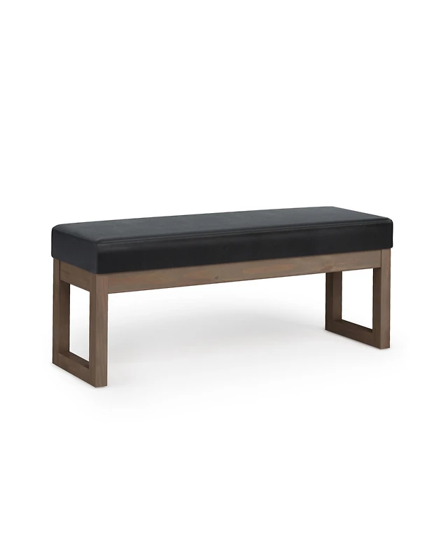 Simpli Home Reynolds Ottoman Bench in Distressed Saddle Brown Pu Leather