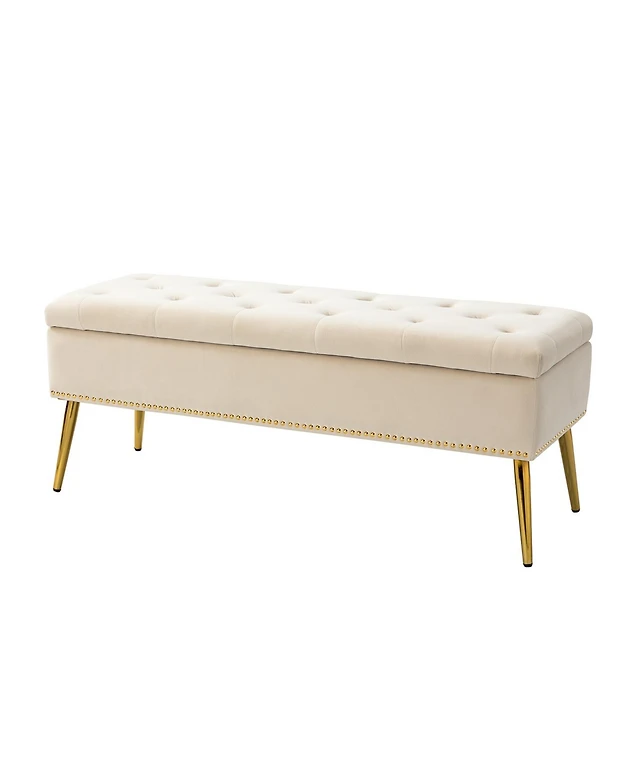 Streamdale Beige Linen Storage Bench with Iron Legs
