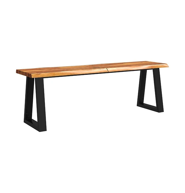 Gymax Solid Acacia Wood Patio Bench Dining Bench Outdoor W/Rustic Metal Legs