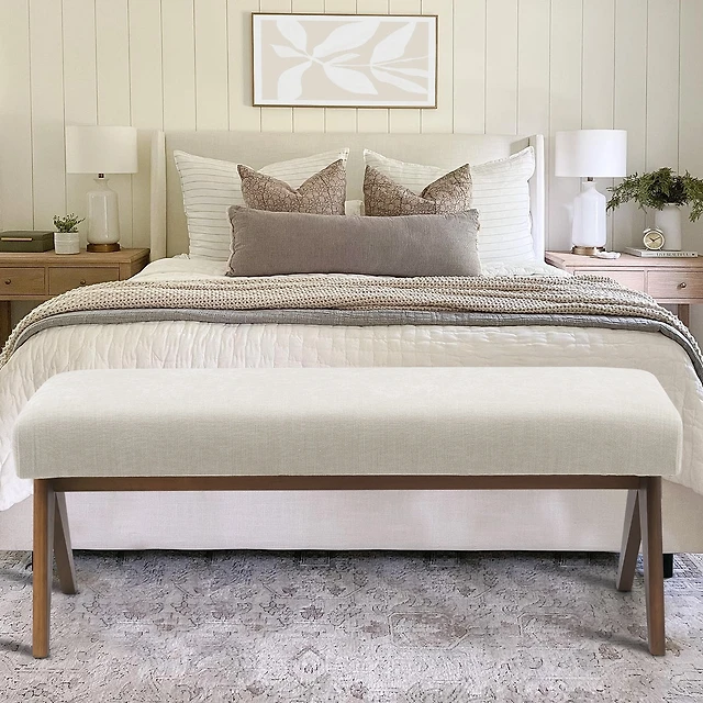 Ink+Ivy 42" Wood Steve Wide Boucle Waterfall Bench