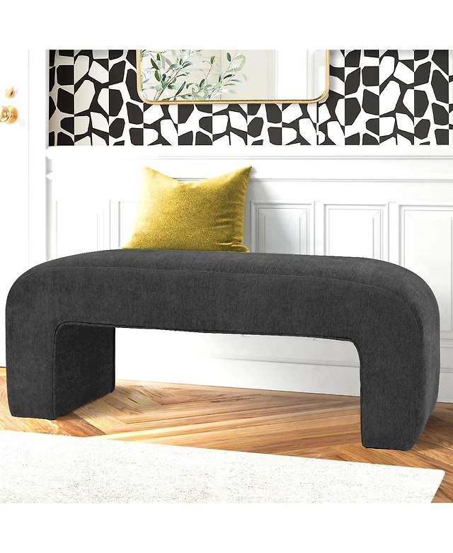 Faux Fur Accent Bench – Upholstered Seat for Living Room or Vanity