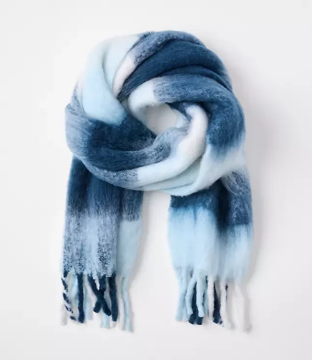 Steve Madden Women's Color Blocked Out Plaid Fringe Scarf