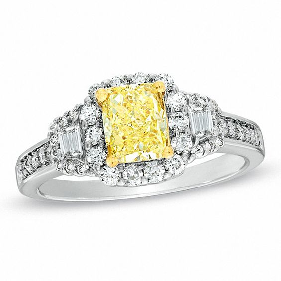 1-5/8 CT. T.w. Certified Cushion-Cut Yellow Diamond Frame Engagement Ring in 18K White Gold (P/Si2)
