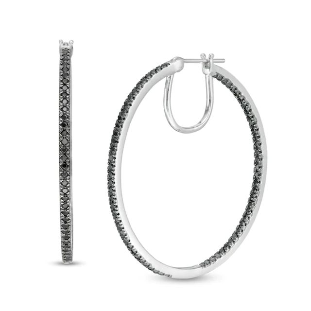 1 CT. T.w. Black Diamond Inside-Out Hoop Earrings in Sterling Silver