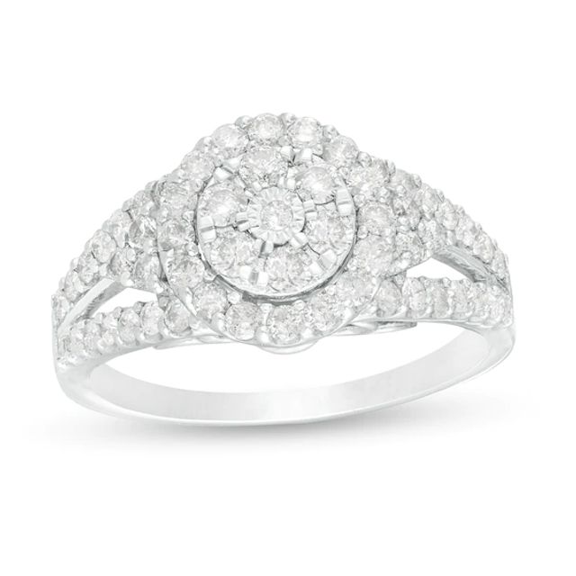 1 CT. T.w. Composite Diamond Oval Frame Multi-Row Engagement Ring in 10K White Gold