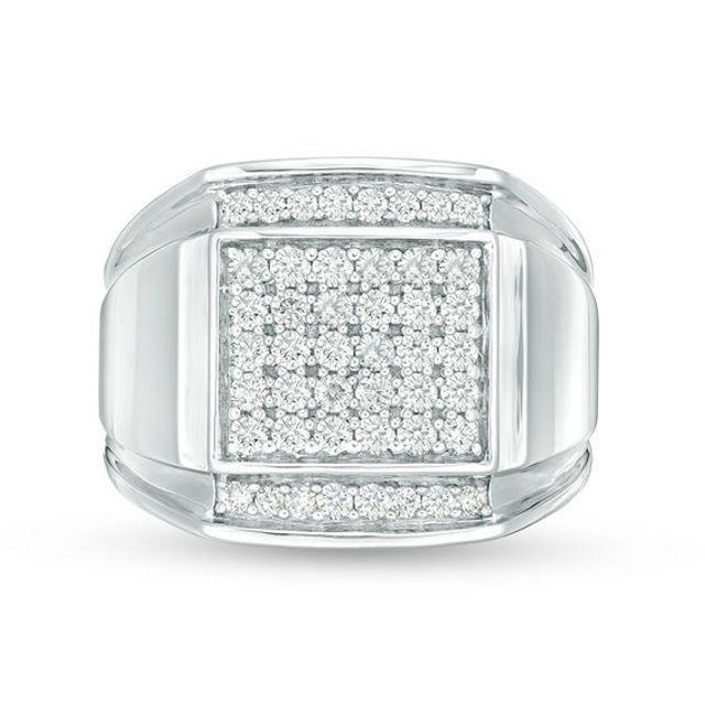 Previously Owned - 1-1/2 CT. T.w. Composite Diamond Square Top Grooved Shank Ring in 10K White Gold