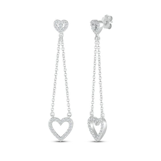 Diamond Heart Dangle Earrings 1/4 ct tw Sterling Silver