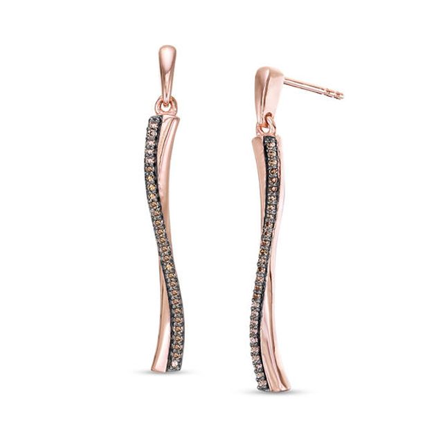 1/6 CT. T.w. Enhanced Champagne Diamond Ribbon Drop Earrings in 10K Rose Gold