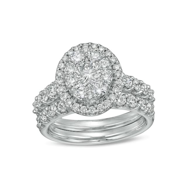 2 CT. T.w. Composite Oval Diamond Frame Bridal Set in 14K White Gold