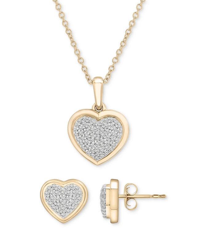 2-Pc. Set Diamond Heart Pendant Necklace & Earrings (1/3 ct. t.w.) in 14k Gold-Plated Sterling Silver, Exclusively at Macy's