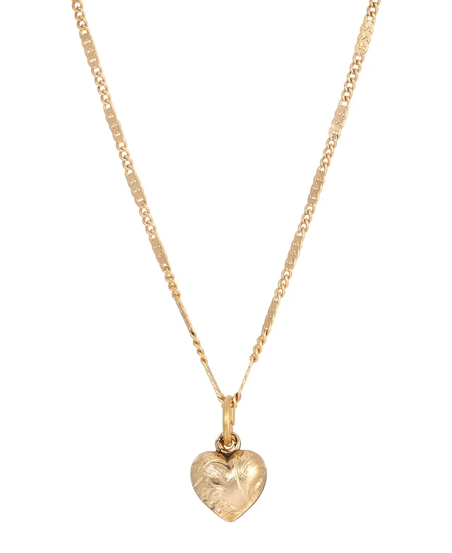 2028 14k Gold-Plated Small Puffed Heart Floral Pattern Necklace
