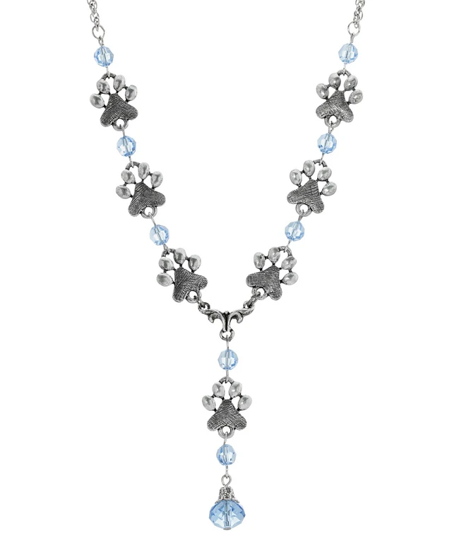 2028 Blue Glass Paw and Bone Pendant Necklace