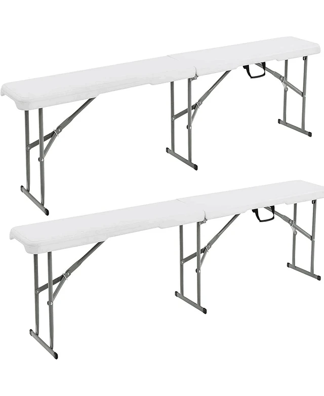 Gymax 2PCS 6 ft Plastic Folding Bench Portable Fold-in-Half Seat w/ 1320 Lbs Capacity