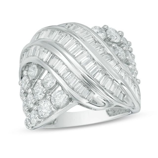 2 CT. T.w. Baguette and Round Diamond Triple-Row Crossover Ring in 10K White Gold - Size 7