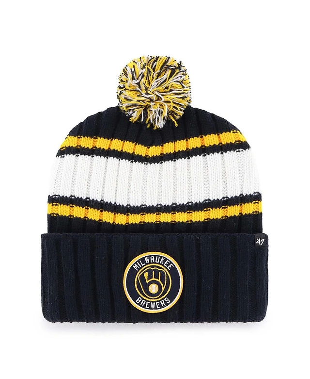 '47 Brand Men's Navy Milwaukee Brewers Plateau Cuffed Knit Hat with Pom