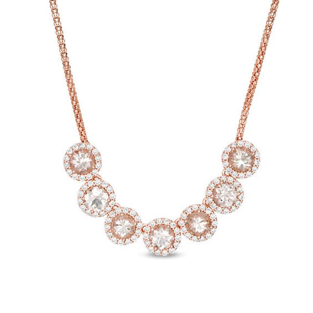 5.0mm Morganite and Lab-Created White Sapphire Frame Seven Stone Necklace in Sterling Silver with 14K Rose Gold Plate