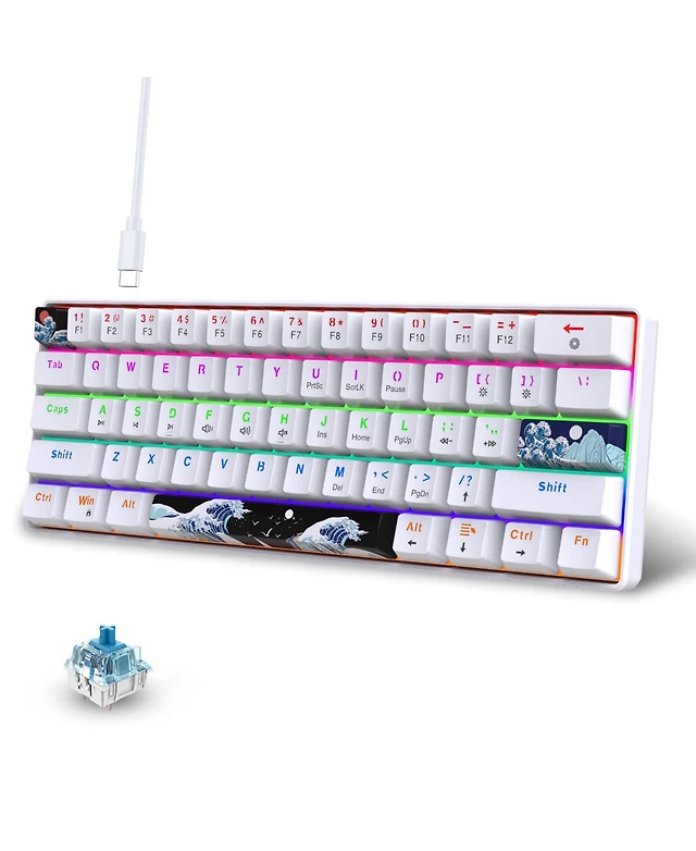 60% Mechanical Gaming Keyboard,61 Keys Blue Switches,Wired Mechanical Keyboard with Led Backlit,Compact Ergonomic Keyboard (White)