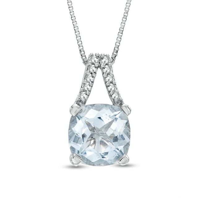 7.0mm Cushion-Cut Aquamarine and Diamond Accent Split Bale Pendant in 10K White Gold