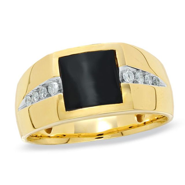 8.0mm Square Onyx and 1/5 CT. T.w. Diamond Ring in 10K Gold