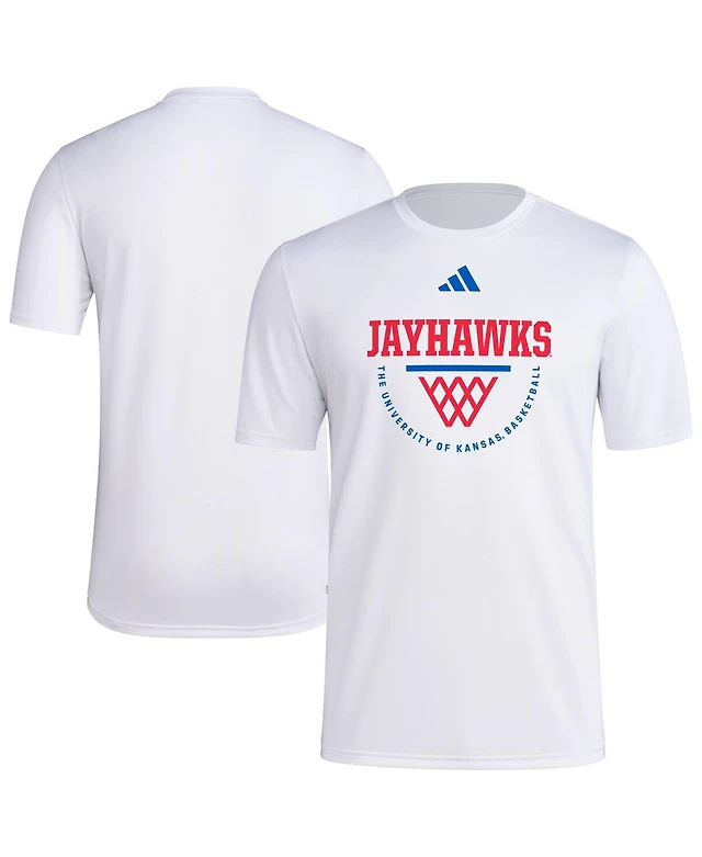 Adidas Men's White Kansas Jayhawks Basketball Practice Net Arch Pregame T-Shirt