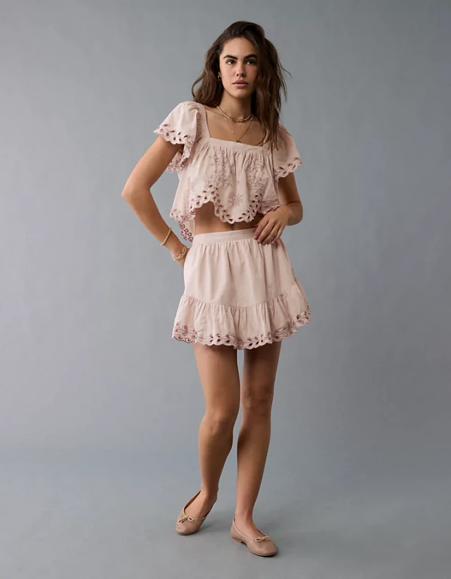 AE High-Waisted Embroidered Eyelet Mini Skirt