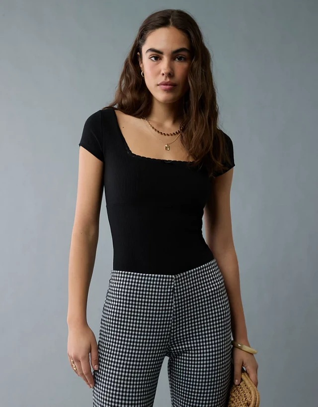 AE Short Sleeve Square Neck Bow Bodysuit