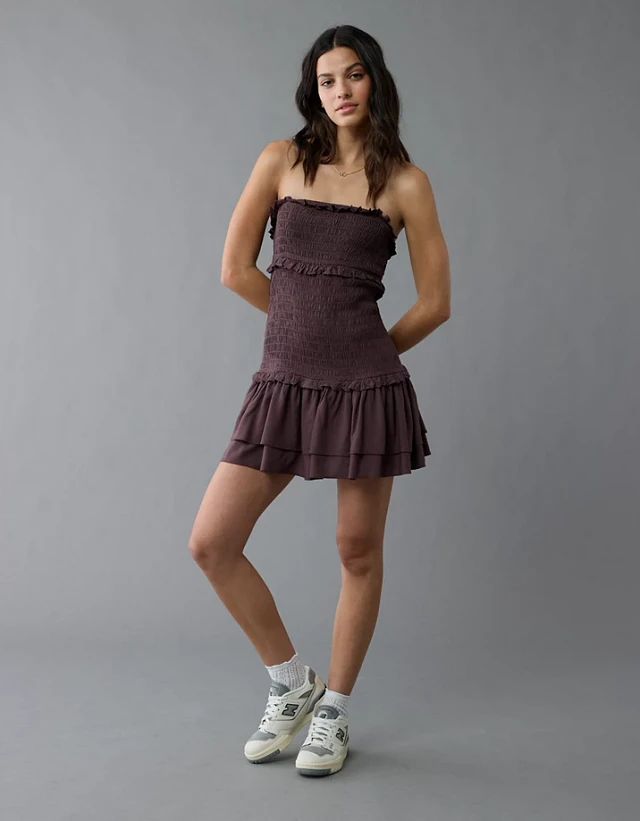 AE Sunchaser Knit Smocked Drop Waist Mini Dress