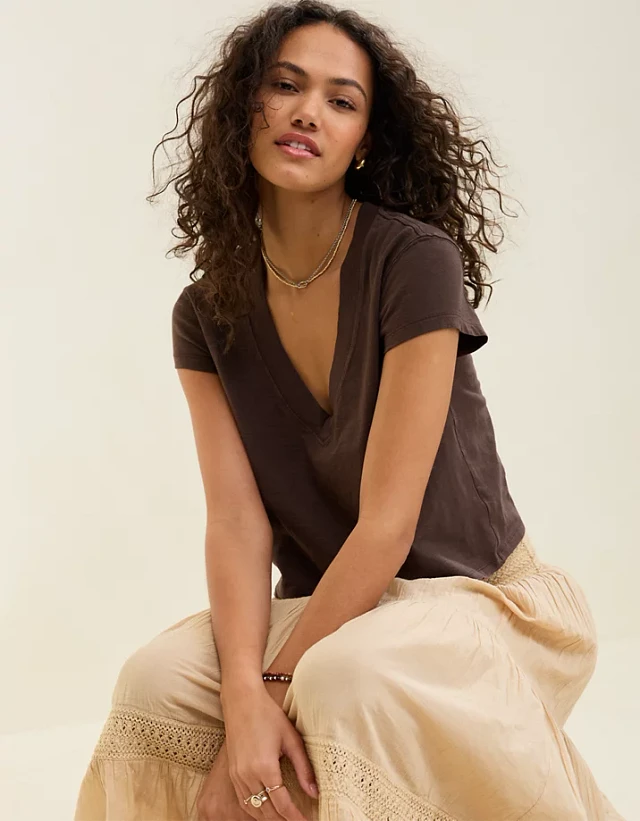 Aerie Cropped Extreme V-Neck T-Shirt