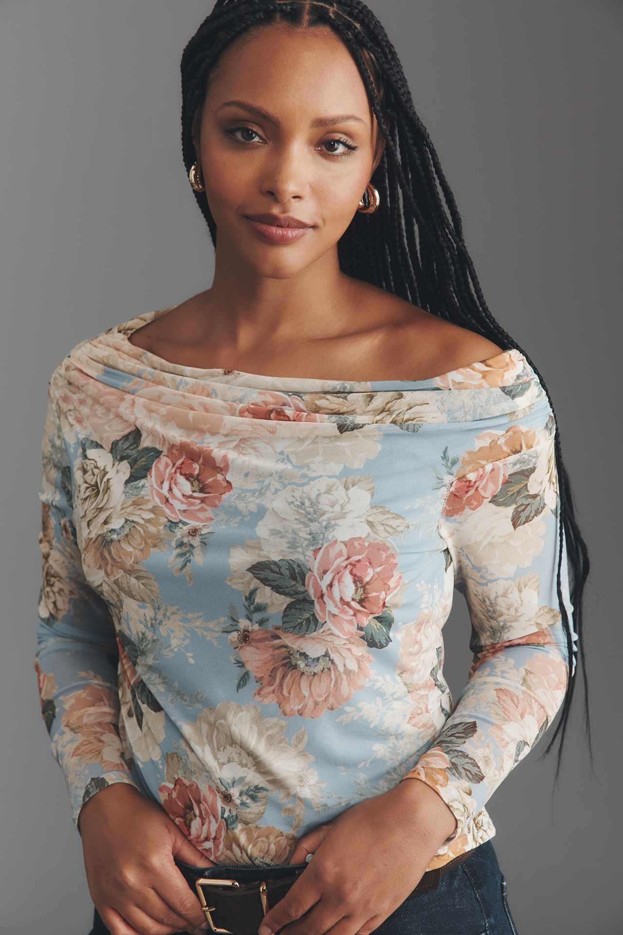 AFRM Plus Barry Power Mesh Cowl-Neck Top