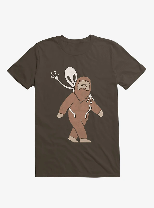 Alien And Sasquatch Piggyback Brown T-Shirt