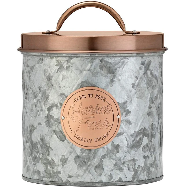 Amici Home Bristol Food Storage Metal Canister, For Kitchen & Household, Silver Copper, Medium, 84 oz
