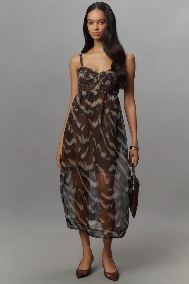 AMUR Zarina Sleeveless Bustier Silk Midi Dress