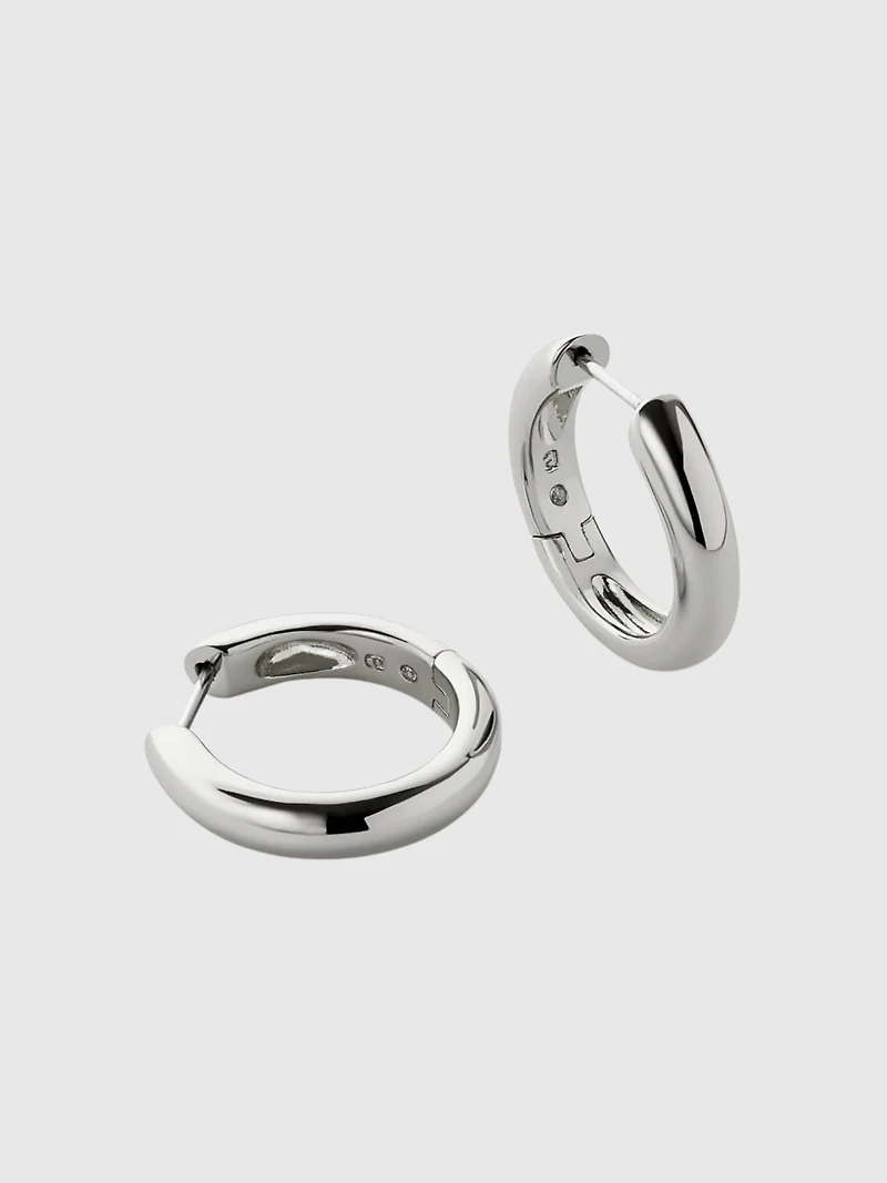 - Plated in rhodium, these versatile hoops feature a timeless design made to be stacked up, styled solo, and worn day or night.