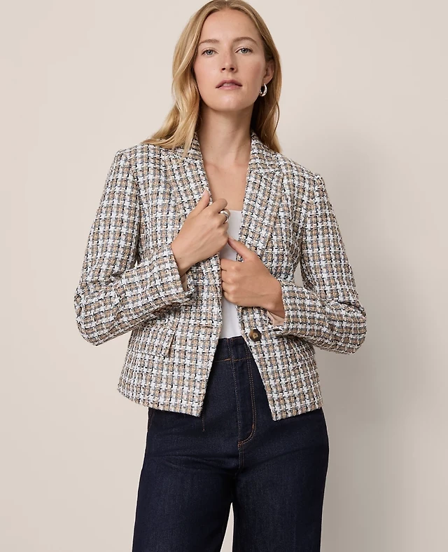 Ann Taylor The One Button Fitted Blazer Tweed Touch Of Blue Women's