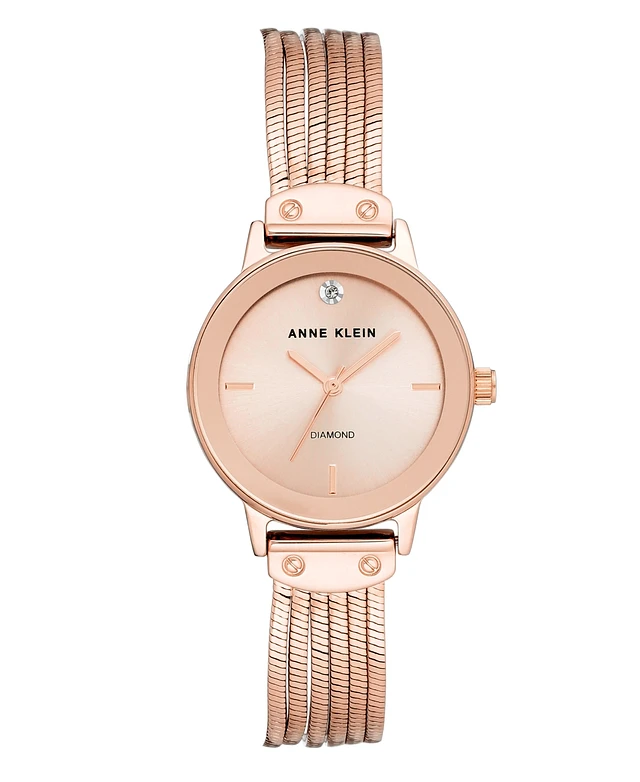 Anne Klein Women's Diamond Accent Rose Gold-Tone Stainless Steel Bracelet Watch 30mm