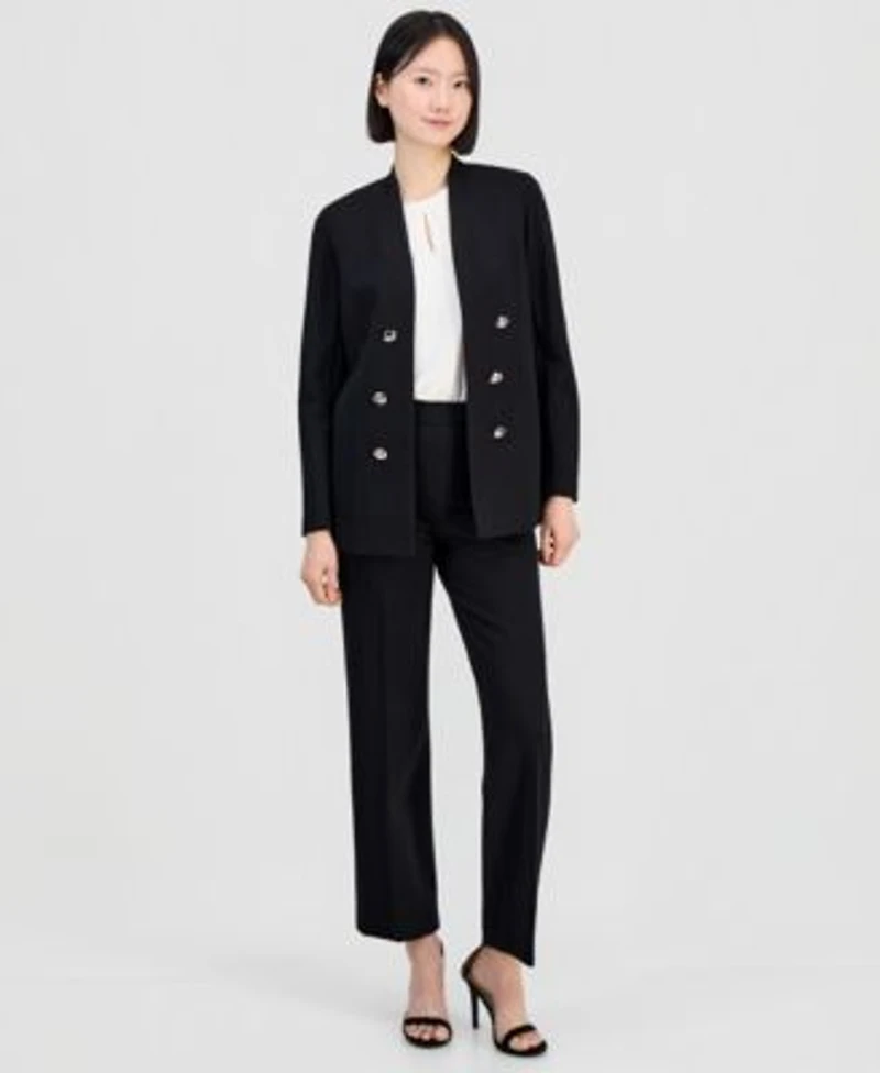 Designed with a versatile open front, Anne Klein's decorative-button blazer effortlessly layers over your favorite shirts and dresses, making it a perfect topper whenever you need added professional polish.