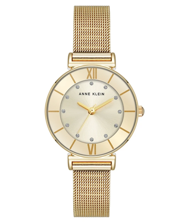 Anne Klein Women's Quartz Premium Round Gold-Tone Stainless Steel Mesh Watch, 29mm