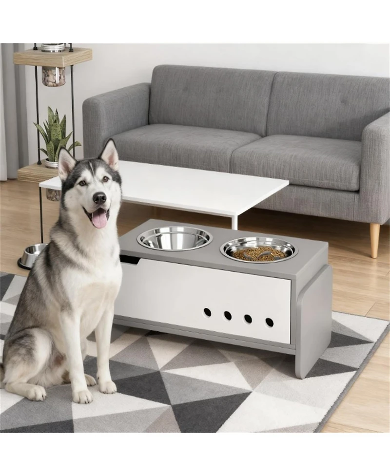 Aostirmotor 24.6 in. Wide 3 Height Adjustable Raised Dog Bowls in Grey in Bloomington, MN