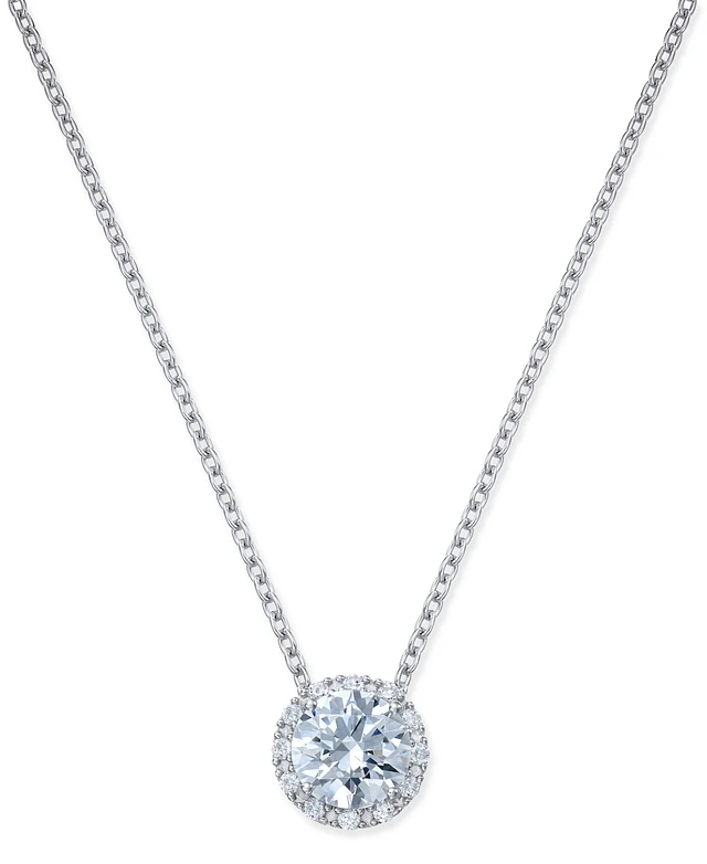 Arabella Cubic Zirconia Halo Pendant Necklace in Sterling Silver