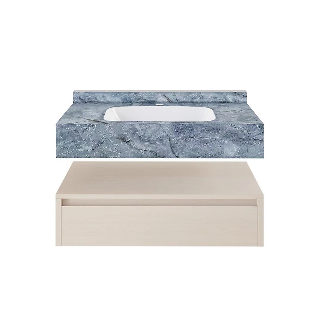 Avancer 36" Wall-Mounted Bathroom Vanity in White Oak with Blue Celeste Sink Top
