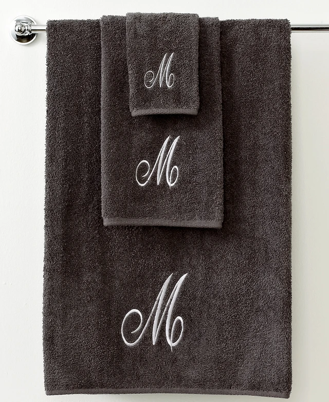 Avanti Monogram Initial Script Granite Silver Bath Towels
