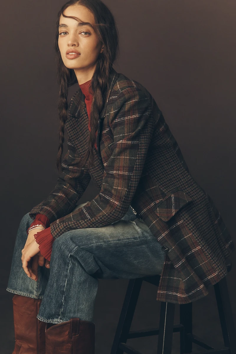 Avec Les Filles Plaid Mix Double-Breasted Blazer