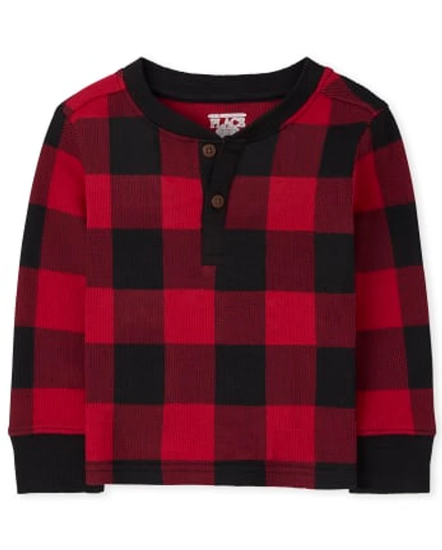 Baby And Toddler Boys Buffalo Plaid Thermal Henley Top