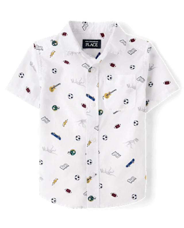 Baby And Toddler Boys School Doodle Poplin Button Up Shirt