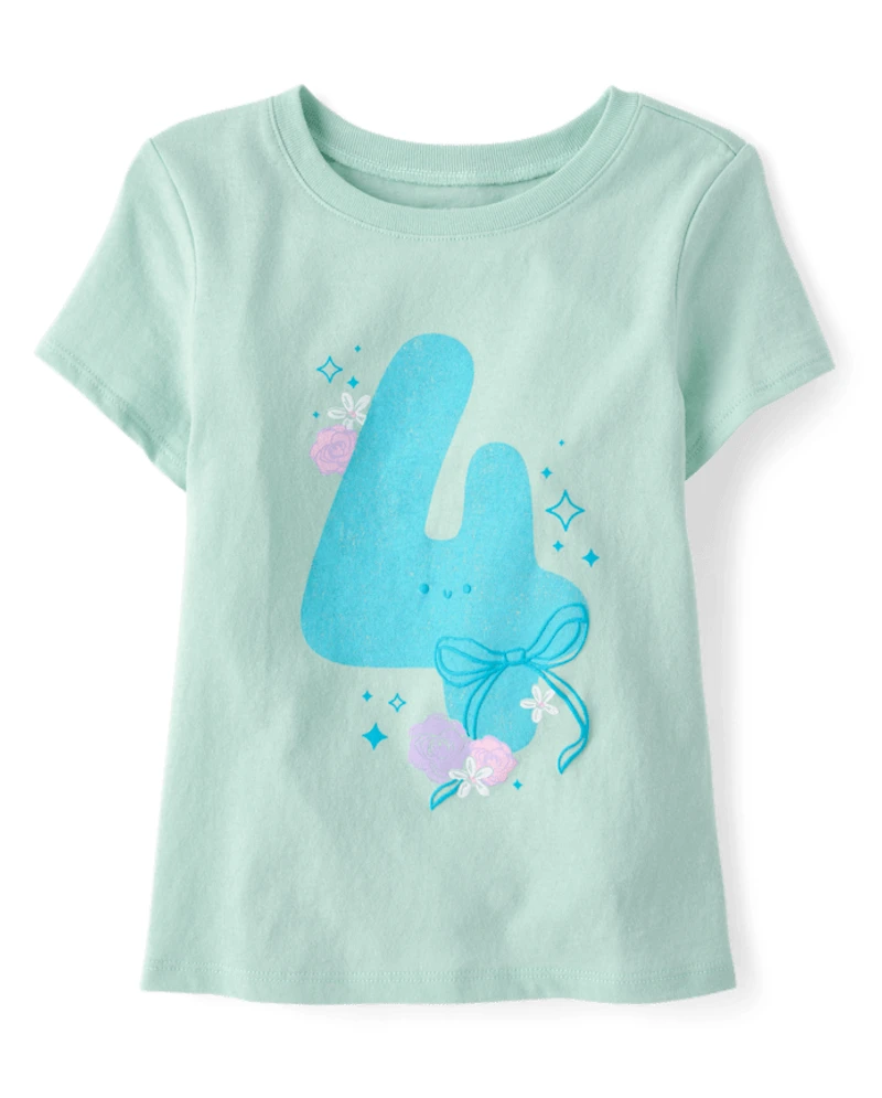 Baby And Toddler Girls 4 Birthday Graphic Tee