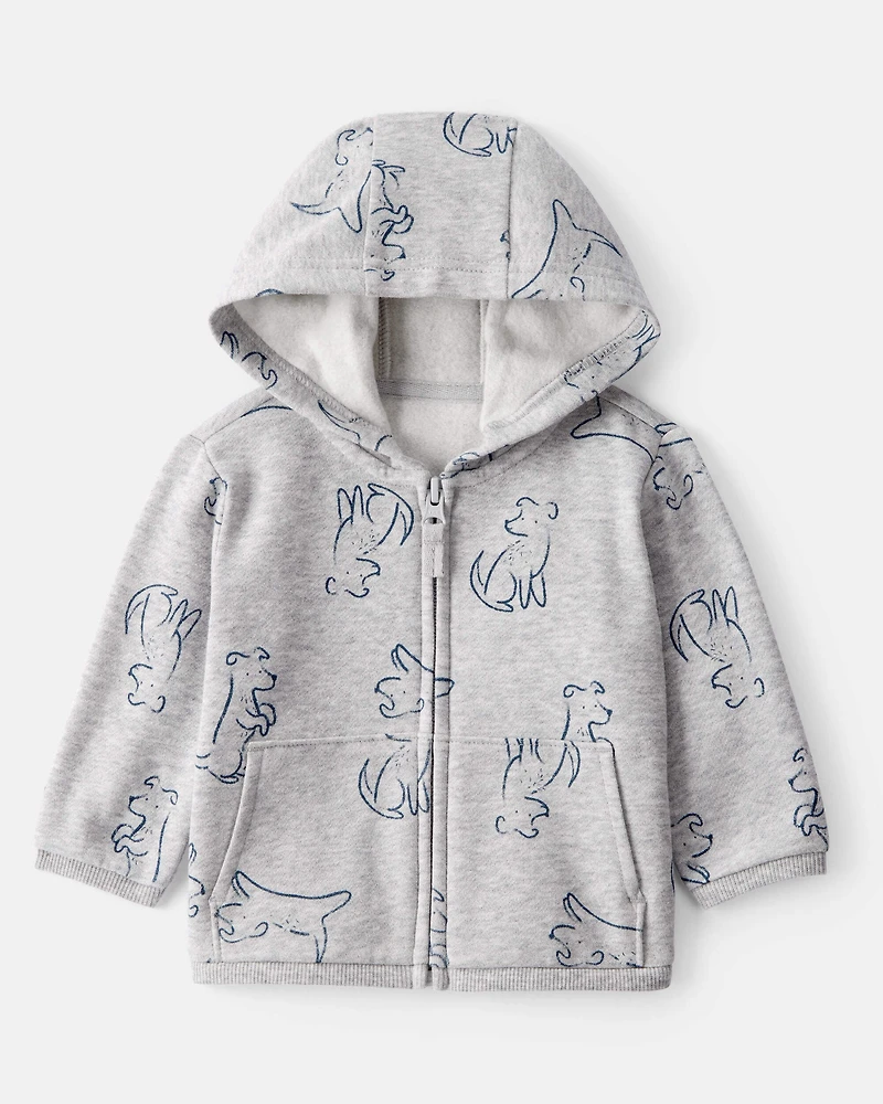 Baby Boy DayDream Fleece Dog Print Long-Sleeve Hoodie - Grey