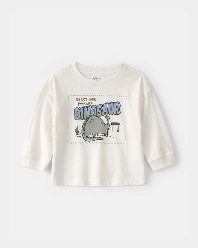 Baby Boy Dinosaur Long-Sleeve Graphic Tee - Cream
