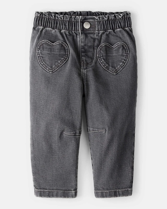 Baby Girl Heart Pocket Barrel Jeans - Black